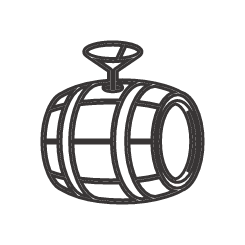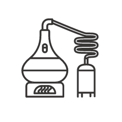 Alcohol from distillation is stored in oak casks for several years.
